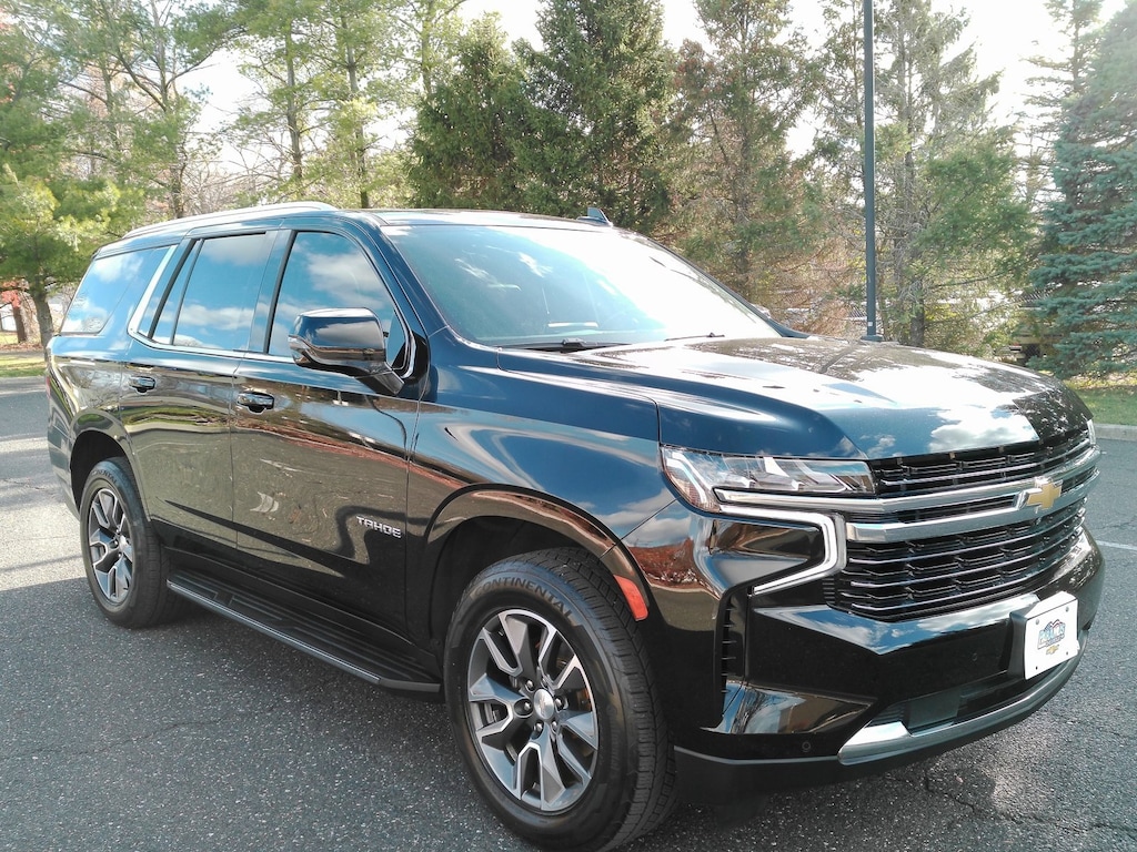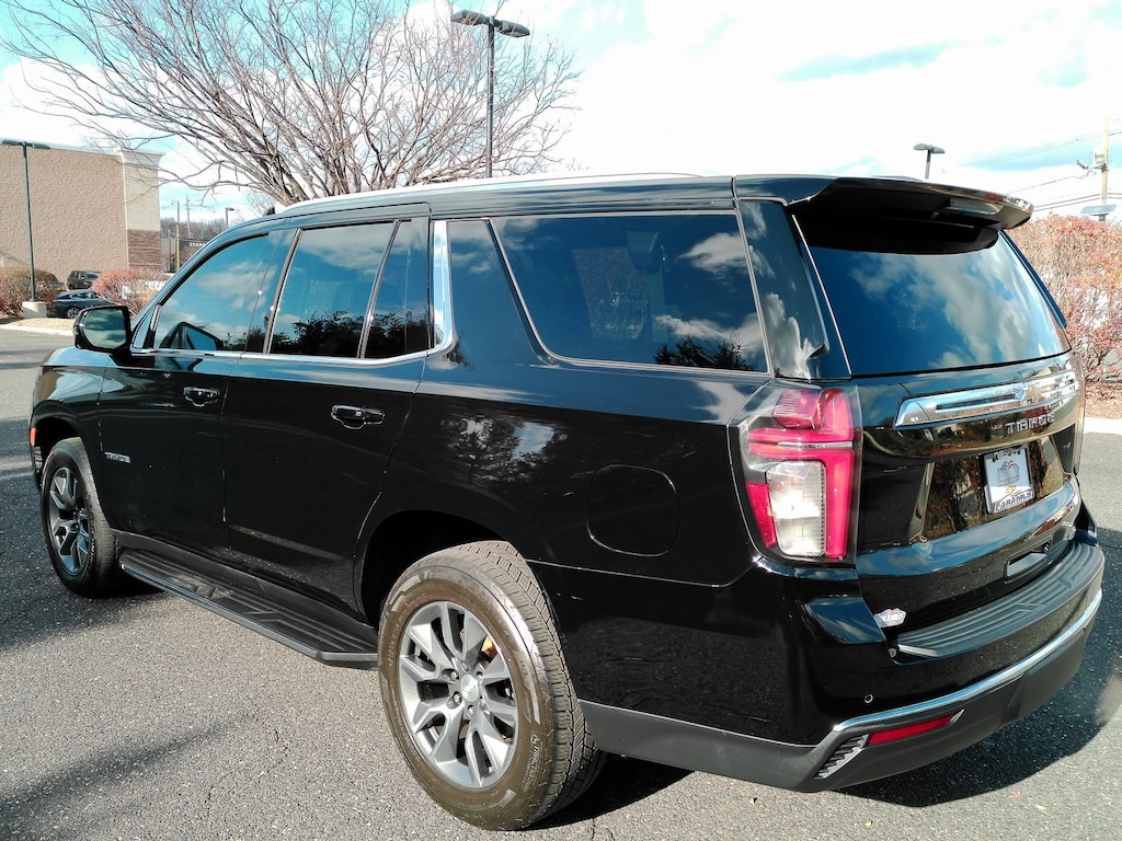 Black 2022 Chevrolet Tahoe LT 4WD 10-Speed Automatic with Overdrive EcoTec3 5.3L V8 4WD, Clean CARFAX, 4WD, Black Leather, 1st & 2nd Row Color-Keyed Carpeted Floor Mats, 2nd Row Pwr Release 60/40 Split-Folding Bench Seat, 3rd Row 60/40 Power-Folding Split-Bench Seat, Auto-Dimming Inside Rear-View Mirror, Automatic Stop/Start, Bose 9-Speaker Stereo Audio System Feature, Bright Front & Rear Door Sill Plates, Color-Keyed Carpeting Floor Covering, Driver & Front Outboard Passenger Airbags, Driver Alert Package, Dual-Pane Power Panoramic Sunroof, Enhanced Driver Information Center, Floor Console w/Storage Area, Hands-Free Rear Power Programmable Liftgate, HD Surround Vision, Heated 2nd Row Outboard Seats, Heated Steering Wheel, Infotainment Display, Lane Change Alert w/Side Blind Zone Alert, Leather-Wrapped Steering Wheel, LED Daytime Running Lamps, Luxury Package, Memory Settings, Memory Settings for Driver, Outside Heated Power-Adjustable Mirrors, Power Tilt & Telescopic Steering Column, Preferred Equipment Group 1LT, Rear Cross Traffic Alert, Rear Pedestrian Alert, Remote Start, SiriusXM Radio w/360L, Start/Stop System Disable Button, Universal Home Remote, Wheels: 20 x 9 Painted Aluminum, Wireless Charging.